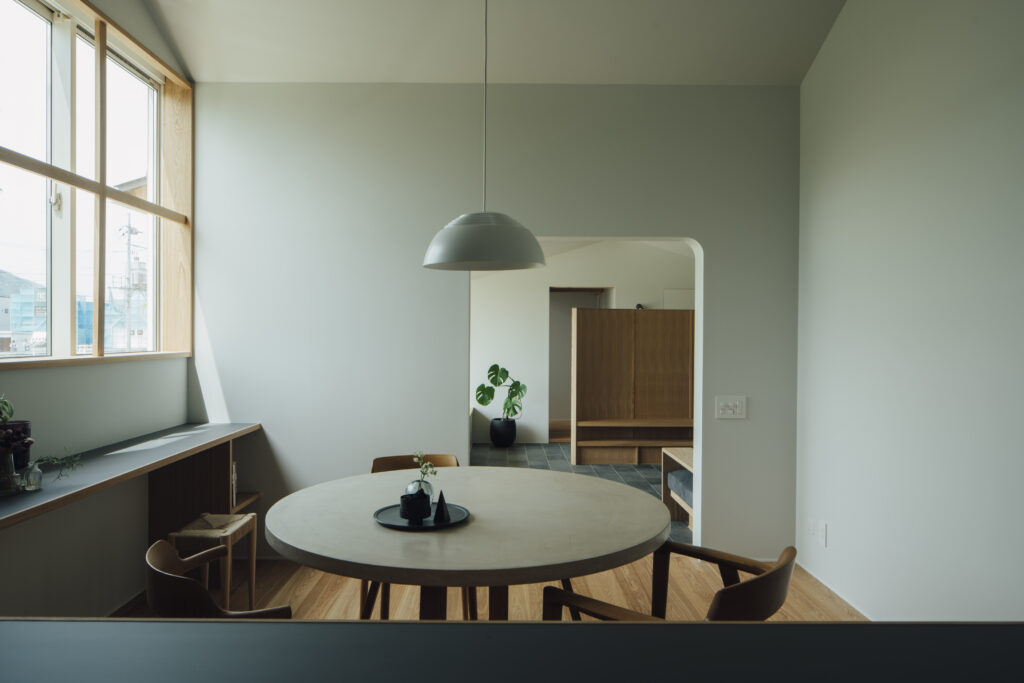 どの部屋にいても山の見え方を楽しめるよう、それぞれの窓の性格を読み取りながらつくった空間である。