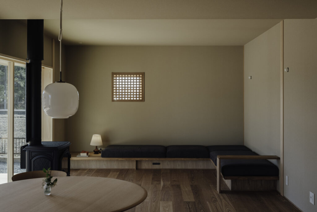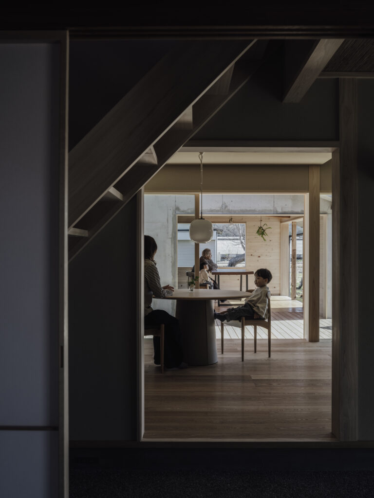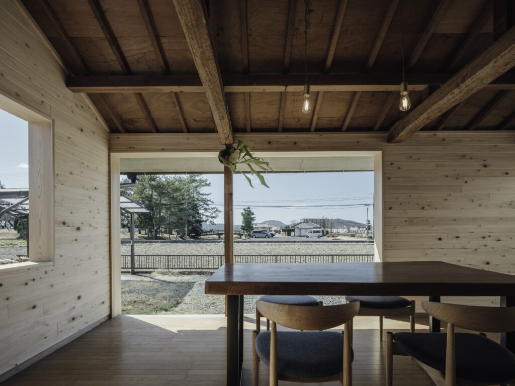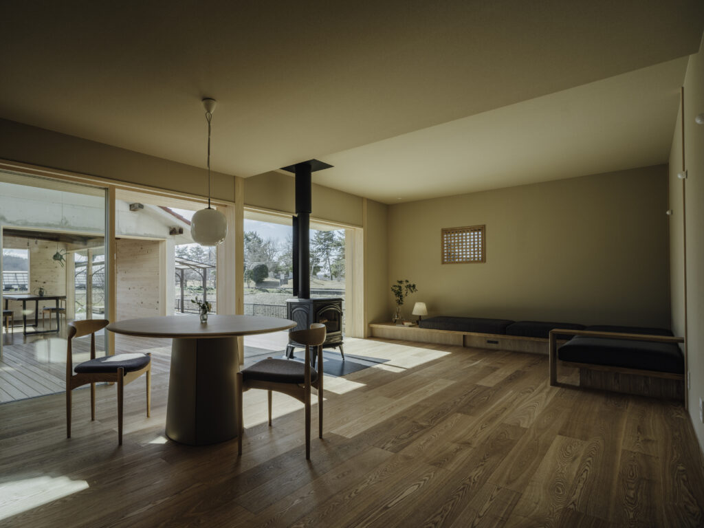 母屋の壁を取り払い設けた大きな窓は、外の世界と中を繋ぎます。