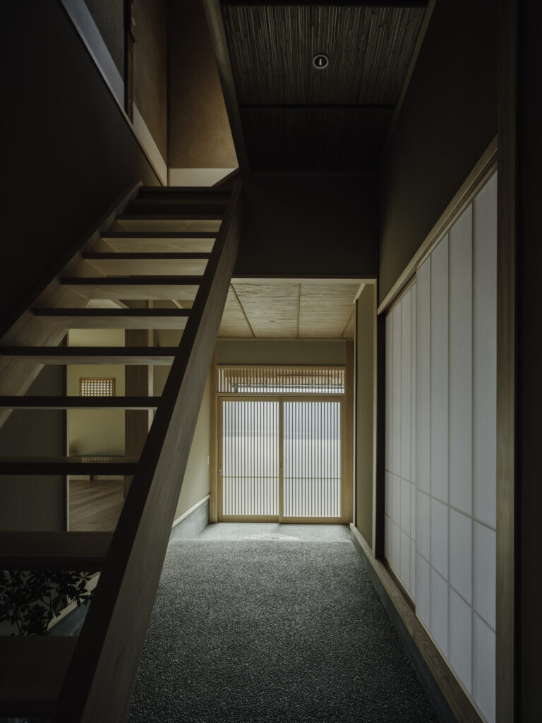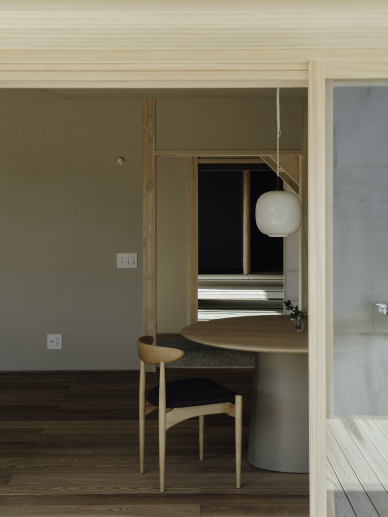 また、寝室である和室とLDKの境界を明確にするため、玄関から廊下までを贅沢な「洗い出しの土間」に一新。