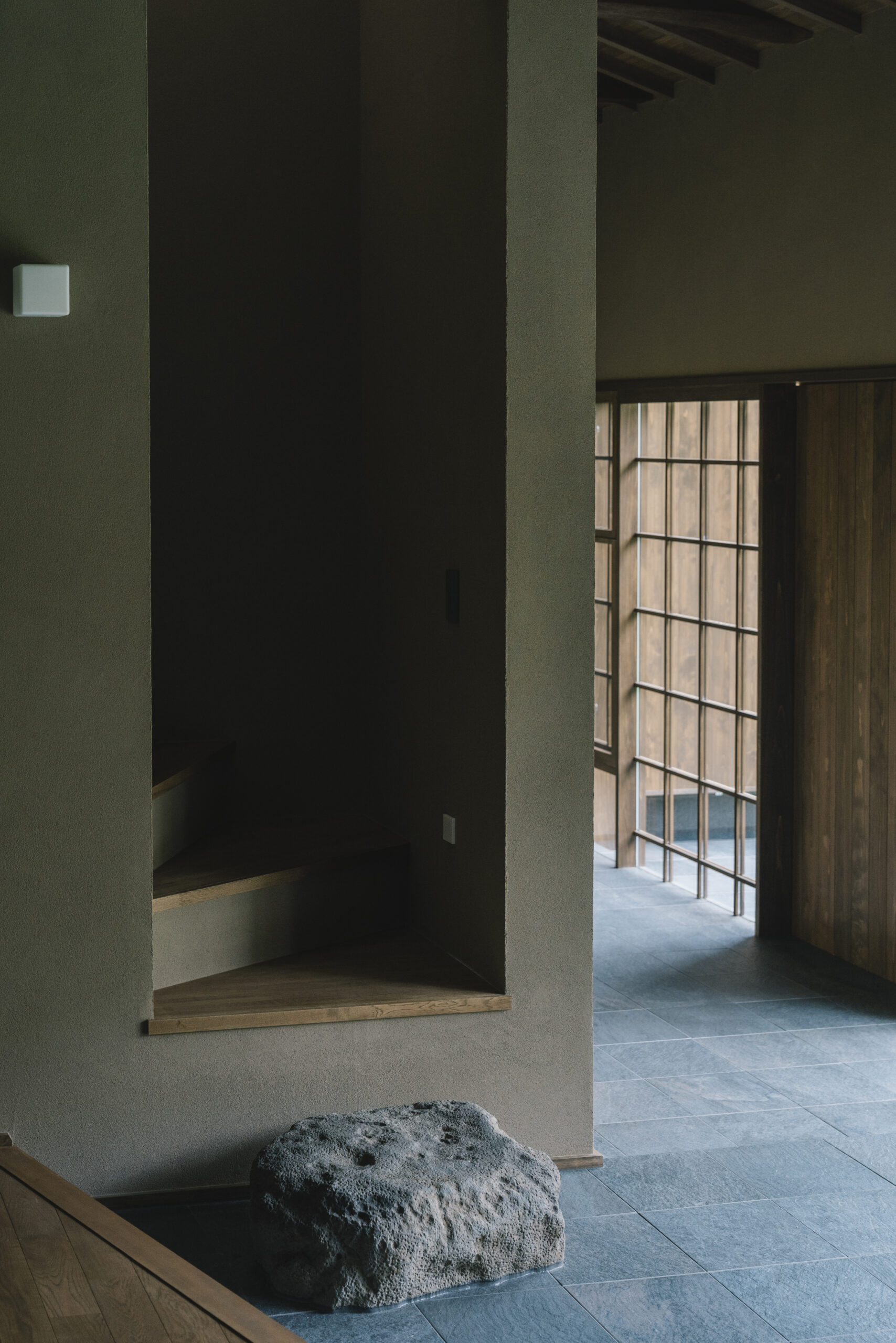 . 廊下:カチオンモルタル仕上げ 島田の家in 岡山市 tou / トウ Architect